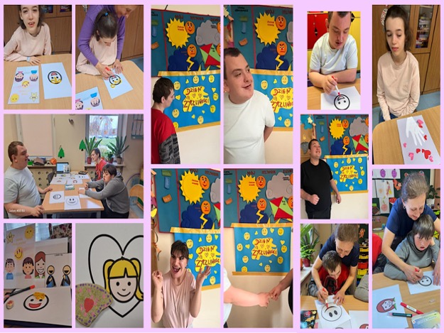 W listopadzie wychowankowie grup rewalidacyjno-wychowawczych zrealizowali zadnie „Dzień Życzliwości i Pozdrowień”. Wychowankowie uczyli się witać. Wykonali również prace plastyczne żółte buźki i uśmiechy. Na koniec przesyłali pozdrowienia i miłe gesty za pomocą obrazków i komunikatorów. Zajęcia przebiegły w atmosferze ciepła radości i wzajemnej życzliwości.