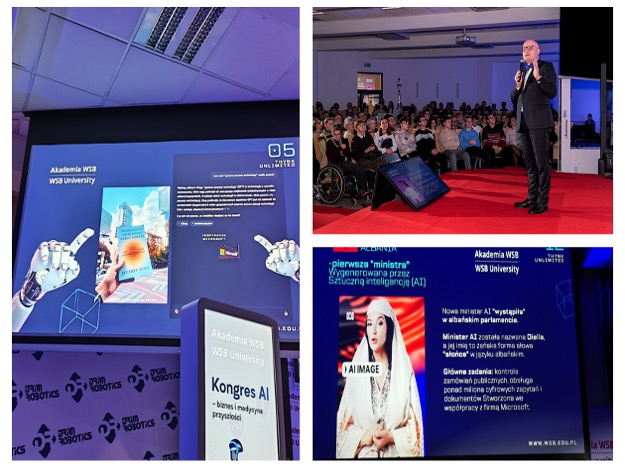 27 listopada, nasi licealiści wzięli udział w Kongresie AI w WSB w Dąbrowie Górniczej — i było naprawdę futurystycznie! Uczestnicy wysłuchali ciekawych wykładów o sztucznej inteligencji oraz o cyfryzacji, które przedstawił m.in. prof. Marcin Lis oraz wiceminister cyfryzacji – dr Michał Gramatyka. Duże wrażenie zrobiła prezentacja pierwszej ministry AI, wygenerowanej cyfrowo postaci o imieniu Diella („słońce”). Młodzież dowiedziała się również, jak tworzy się wirtualnych bohaterów mówiących naszym głosem lub głosem generowanym przez AI. Najwięcej emocji wzbudziło jednak spotkanie z robotami firmy Unitree: humanoidalnym G1 oraz czworonożnym Go2, przypominającym psa. Uczniowie mogli zobaczyć z bliska, jak działają i jak imponujący jest postęp w robotyce. Była to okazja do preorientacji zawodowej naszych uczniów. To było niezwykle inspirujące i pełne wrażeń przedpołudnie!