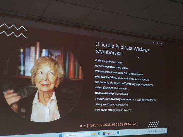 14 marca w tym roku wypadł w sobotę, ale uczniowie naszego liceum nie zapomnieli o Święcie Liczby π. W spotkaniu w „strefie ucznia” uczestniczyli uczniowie wszystkich klas razem z nauczycielami. Wydarzenie rozpoczęło się krótkim wprowadzeniem na temat znaczenia liczby π w matematyce i jej zastosowań w życiu codziennym. Dużym zainteresowaniem cieszyła się prezentacja, w której przedstawiono ciekawostki związane z liczbą π oraz jej historią. Uczniowie wzięli udział w konkursie PI-ękna matematyka. Na zakończenie wszyscy zgromadzenie zagrali w Kahoota. Spotkanie przebiegło w miłej atmosferze i było świetną okazją do rozwijania zainteresowań matematycznych oraz integracji uczniów. Święto Liczby Pi było udanym wydarzeniem, które pokazało, że matematyka może być ciekawa i inspirująca.