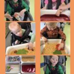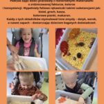 Dzieci z grup Kotki oraz Misie wzięły udział w zajęciach z zakresu stymulacji sensorycznej, realizowanych w ramach programu autorskiego „Sensoplastyczne fascynacje”. Tematem przewodnim spotkania były sensoryczne rękawiczki. Podczas zajęć dzieci pracowały z różnorodnymi materiałami o zróżnicowanej fakturze, kolorze i konsystencji. Wypełniały foliowe rękawiczki takimi substancjami jak: kisiel, groch, kasza, kolorowe pianki, makaron. Każdy z tych składników stymulował inne zmysły – dotyk, wzrok, a nawet zapach – dostarczając dzieciom bogatych doświadczeń.