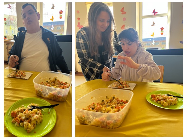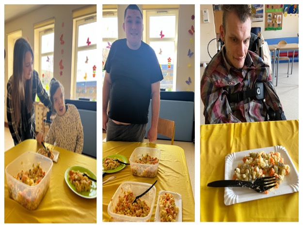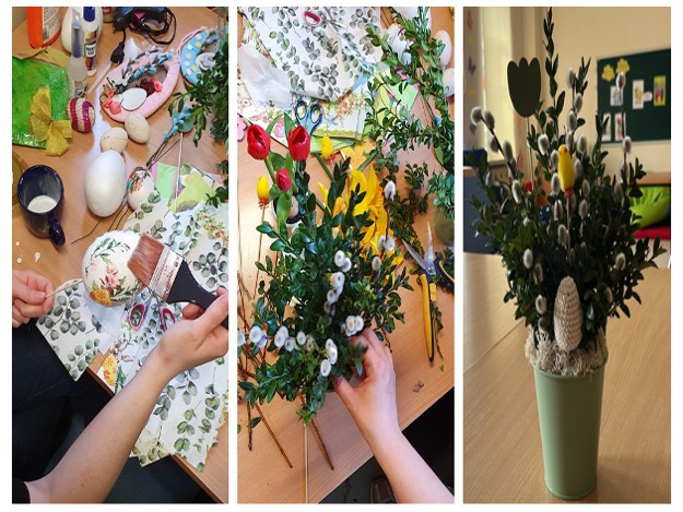 W okresie przedświątecznym w grupach rewalidacyjno-wychowawczych zorganizowaliśmy warsztaty o tematyce wielkanocnej. Uczestnicy mieli okazję tworzyć stroiki świąteczne oraz ozdabiać jajka metodą decoupage. Odbyły się również zajęcia kulinarne, podczas których przygotowaliśmy sałatkę jarzynową, angażując zmysły uczestników. Spotkania przebiegały w ciepłej, radosnej atmosferze i stanowiły okazję do wspólnego przeżywania nadchodzących świąt. Na zakończenie złożyliśmy sobie serdeczne życzenia wielkanocne.