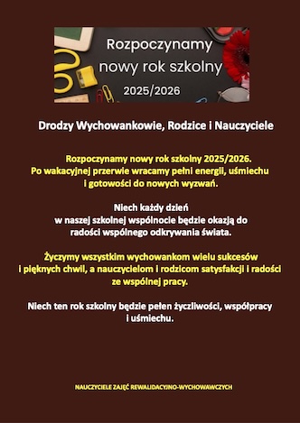 Rozpoczął się nowy rok szkolny. Przywitaliśmy naszych wychowanków w nowych salach i przystąpiliśmy do realizacji naszych zajęć. Czeka nas wiele miłych chwil: wspólnych zabaw, spacerów, konkursów i uroczystości. Pozdrawiamy serdecznie. Nauczyciele grup rewalidacyjno-wychowawczych. Powitanie uczestników zajęć – zobacz film.